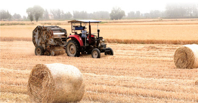 河南省衛輝市推廣秸稈回收再利用。圖為秸稈打捆機在田間作業。 李青春攝(人民視覺) |