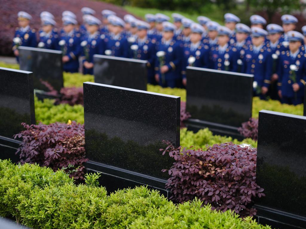 清明節前夕,四川省森林消防總隊特勤大隊在成都市烈士陵園緬懷長眠在這里的革命先烈和救火勇士(4月3日攝)。