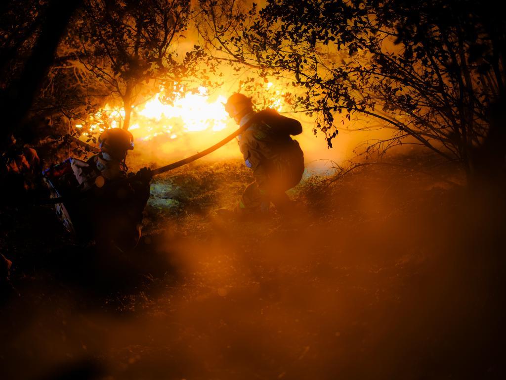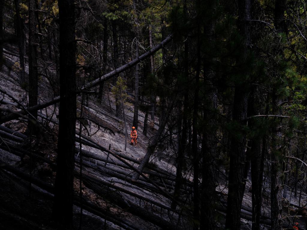 經磊讓班里的消防員帶裝備趕上來,自己和吉胡布鐵拿起衣服頭盔就往上沖。他倆翻過山脊才找到樹林下的火線,隨即用樹枝一頓猛打。幾分鐘后,當聽到援軍水泵到了時,經磊整個人像被抽掉筋骨一樣,軟綿綿地倒在地上。