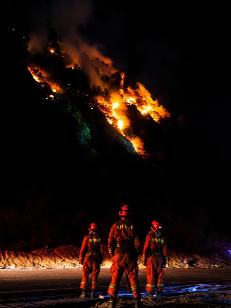 30輛消防車,上百根管帶,上百名消防員,像一面無形又可靠的墻,擋在山火與村民之間。