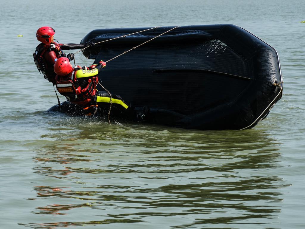 四川省森林消防總隊特勤大隊消防員在沱江金堂段進行水域救援訓練(8月26日攝)。