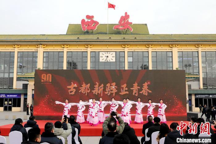 圖為西安站南廣場上的慶祝活動。中新網記者 張遠 攝