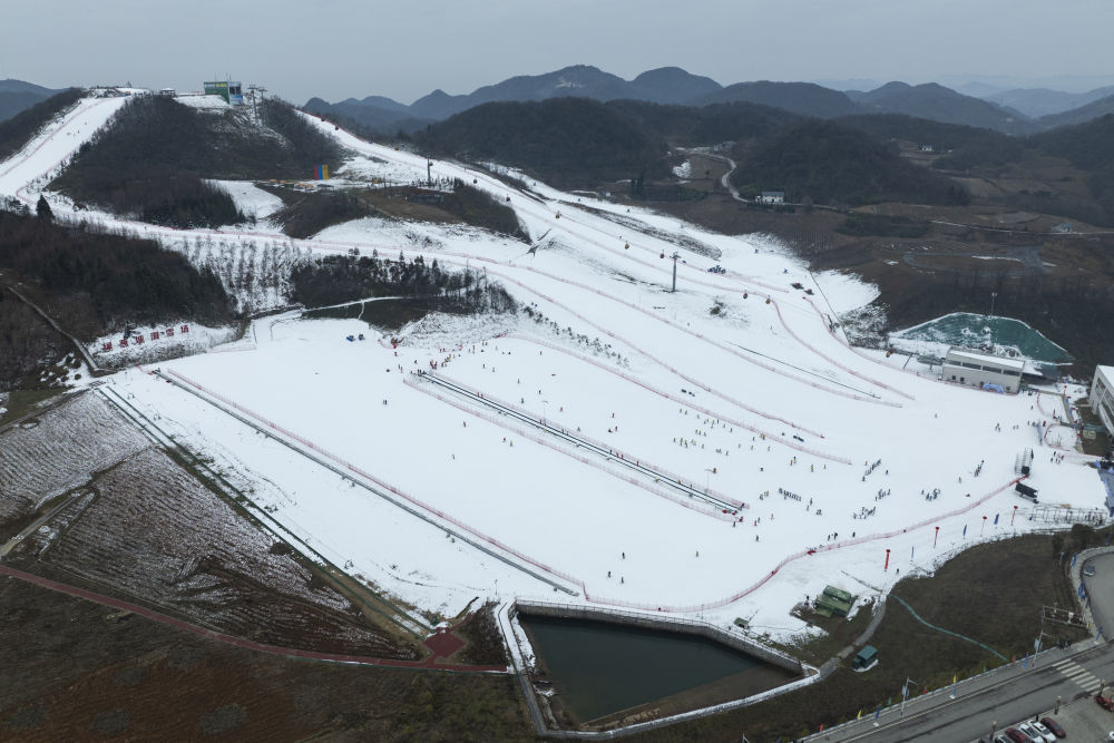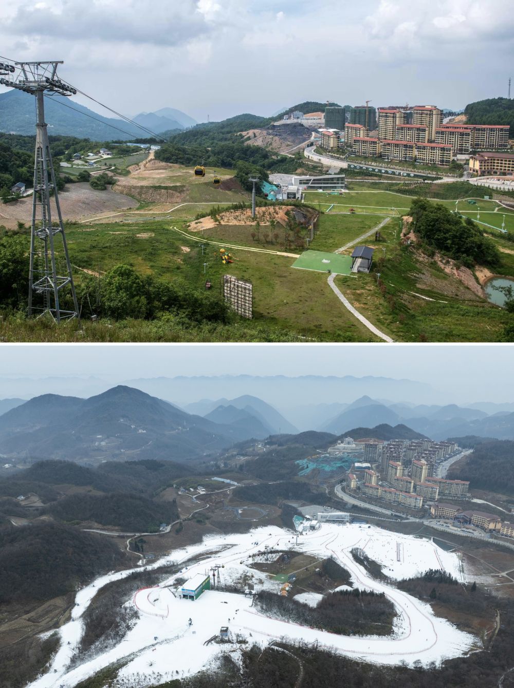 上圖為夏季的綠蔥坡滑雪場;下圖為雪季的綠蔥坡滑雪場