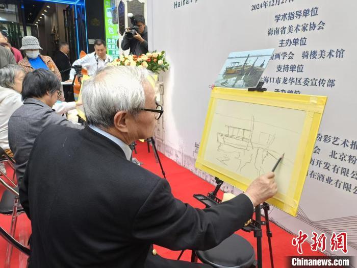 12月27日,首屆海南國(guó)際粉畫邀請(qǐng)展暨海南省粉畫學(xué)會(huì)成立交流展在海口市騎樓美術(shù)館開幕。圖為臺(tái)灣粉彩藝術(shù)推廣協(xié)會(huì)會(huì)長(zhǎng)謝夢(mèng)龍正在進(jìn)行粉畫創(chuàng)作。中新網(wǎng)記者 張茜翼 攝