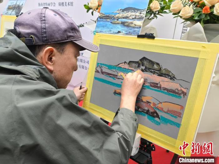 在百年老街上,民眾在參觀不同風(fēng)格作品同時(shí),還參與到跟名家同臺(tái)創(chuàng)作的環(huán)節(jié),共同完成4幅粉畫作品。