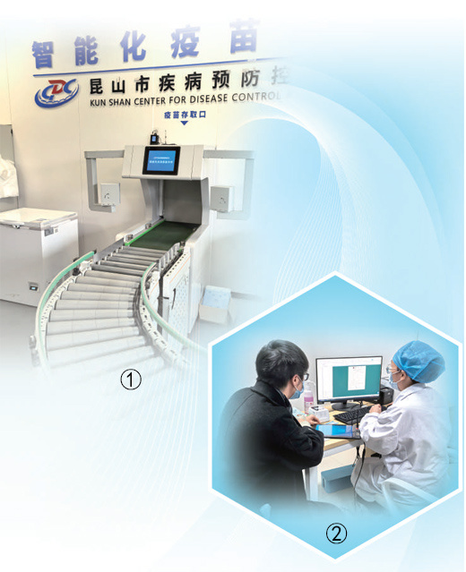 圖①:江蘇蘇州市昆山市疾控中心智能化疫苗冷庫實現全流程信息化。圖為智能化疫苗冷庫的存取口。 圖②:浙江溫州市第六人民醫院結核預防門診診室內,醫生給結核病密切接觸者進行預防性治療。 以上圖片均為本報記者申少鐵攝 |
