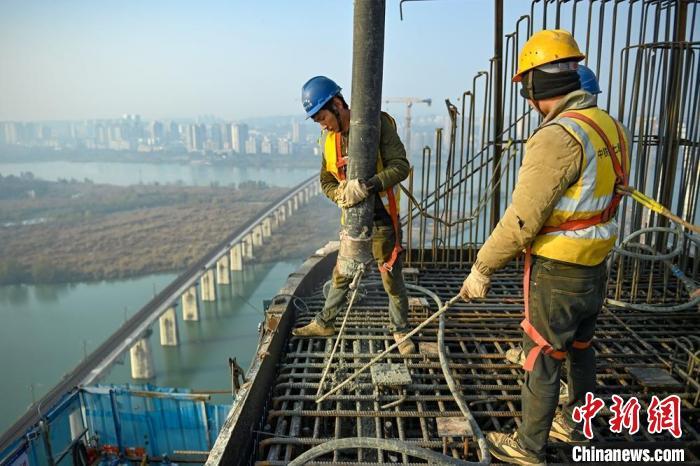 中新網遂寧12月28日電 (記者 劉忠俊)12月28日,經過7個小時的連續澆筑,新建成都至達州至萬州高速鐵路(以下簡稱“成達萬高鐵”)全線控制性工程遂寧涪江特大橋主塔順利封頂,為后續施工奠定了堅實基礎。