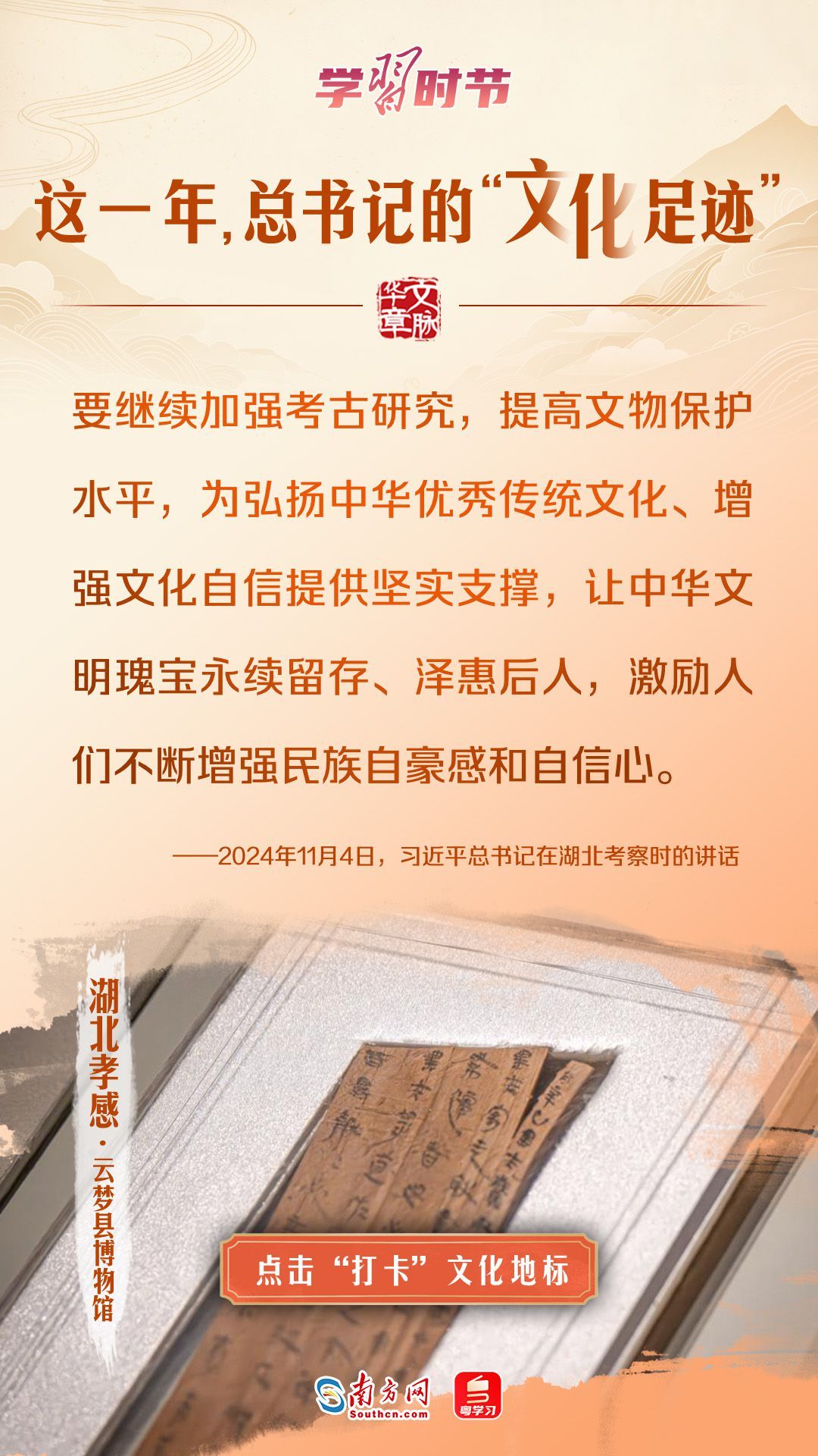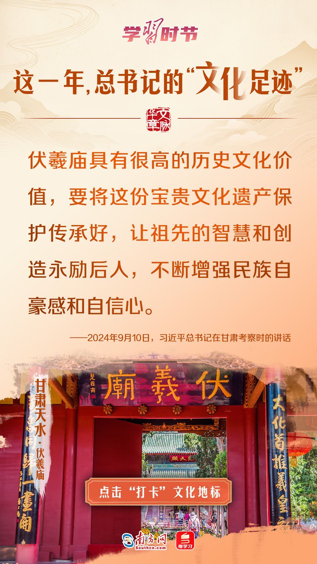今年以來,習近平總書記曾參觀考察天津古文化街、甘肅伏羲廟、湖北云夢縣博物館等文化地標,強調要讓中華文明瑰寶永續留存、澤惠后人,激勵人們不斷增強民族自豪感和自信心。