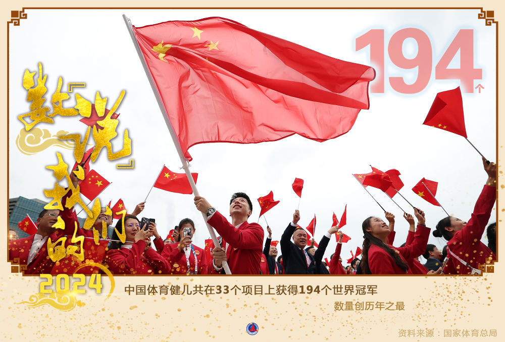 國(guó)家體育總局競(jìng)技體育司12月26日發(fā)布《2024年我國(guó)運(yùn)動(dòng)員取得成績(jī)報(bào)告》。2024年中國(guó)體育健兒共在33個(gè)項(xiàng)目上獲得194個(gè)世界冠軍,數(shù)量創(chuàng)歷年之最。