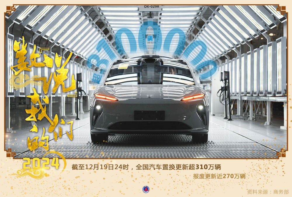 商務(wù)部消費(fèi)促進(jìn)司司長(zhǎng)李剛介紹,截至12月19日24時(shí),全國(guó)汽車(chē)報(bào)廢更新近270萬(wàn)輛,汽車(chē)置換更新超310萬(wàn)輛。