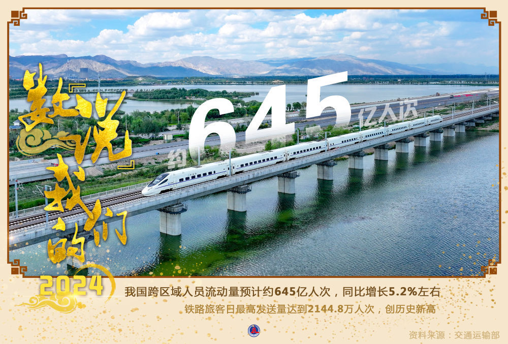 2024年我國(guó)跨區(qū)域人員流動(dòng)量預(yù)計(jì)約645億人次,同比增長(zhǎng)5.2%左右。鐵路旅客日最高發(fā)送量達(dá)到2144.8萬(wàn)人次,創(chuàng)歷史新高。