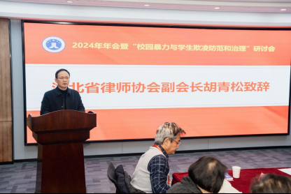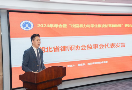 荊楚網(湖北日報網)訊(記者 周光潔 實習生 王儷穎 通訊員 羅潔)12月30日,湖北省律師協會未成年人保護專業委員會在湖北省律師協會舉辦了“2024年年會暨校園暴力與學生欺凌防范和治理”研討會。湖北省律師協會副會長胡青松出席會議并致辭,未保會委員和未保志愿律師共計60余人參加會議,本次研討會由省律協未保會主任李春生主持。