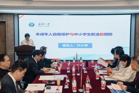 活動邀請武漢大學法學院教授、刑法教研室主任葉小琴作主題演講;邀請湖北省高級人民法院四級高級法官張云燕、湖北省人民檢察院第九檢察部副主任、三級高級檢察官蘇永勝、湖北黃鶴律師事務所主任曹紅玲、武漢大乘心理咨詢中心主任賈洪武圍繞校園暴力與學生欺凌現狀、原因、防治措施、心理健康和未成年人保護相關問題展開展研討。