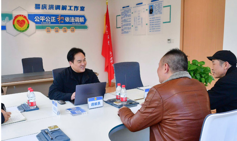 易慶洪在調(diào)解工作室調(diào)解現(xiàn)場。通訊員供圖