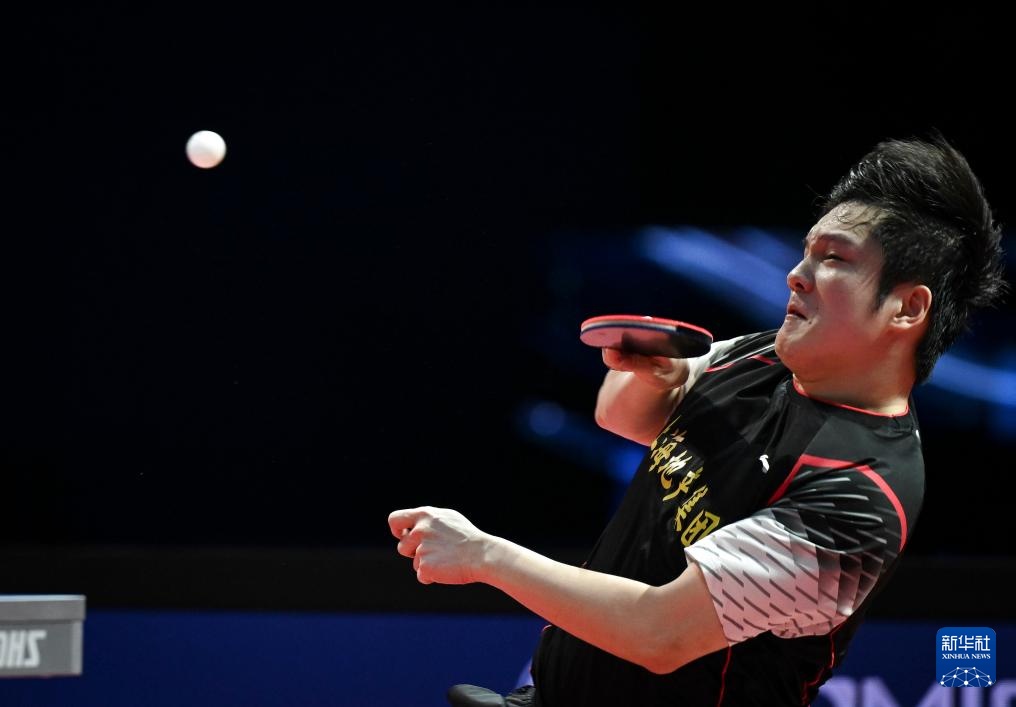 12月31日,上海地產集團隊選手樊振東在單打比賽中回球。他1比3不敵山東魏橋·向尚運動隊選手王楚欽。