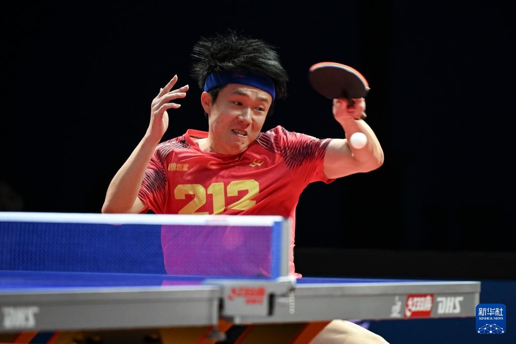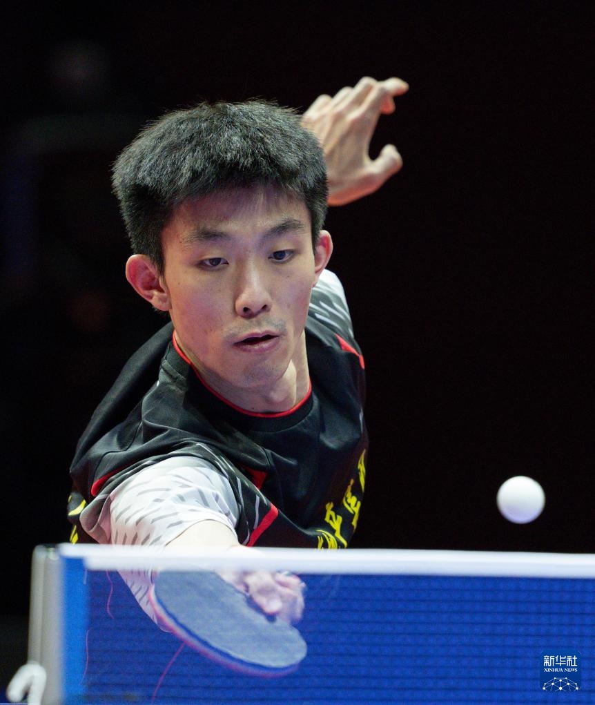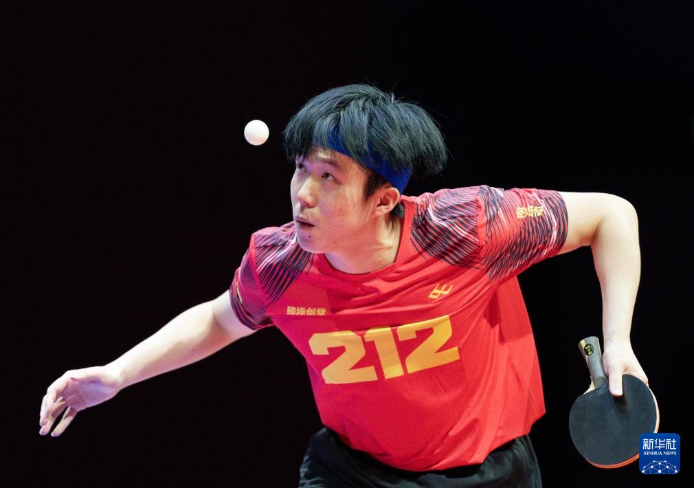 12月31日,山東魏橋·向尚運動隊選手王楚欽在單打比賽中回球。他3比1戰勝上海地產集團隊選手樊振東。