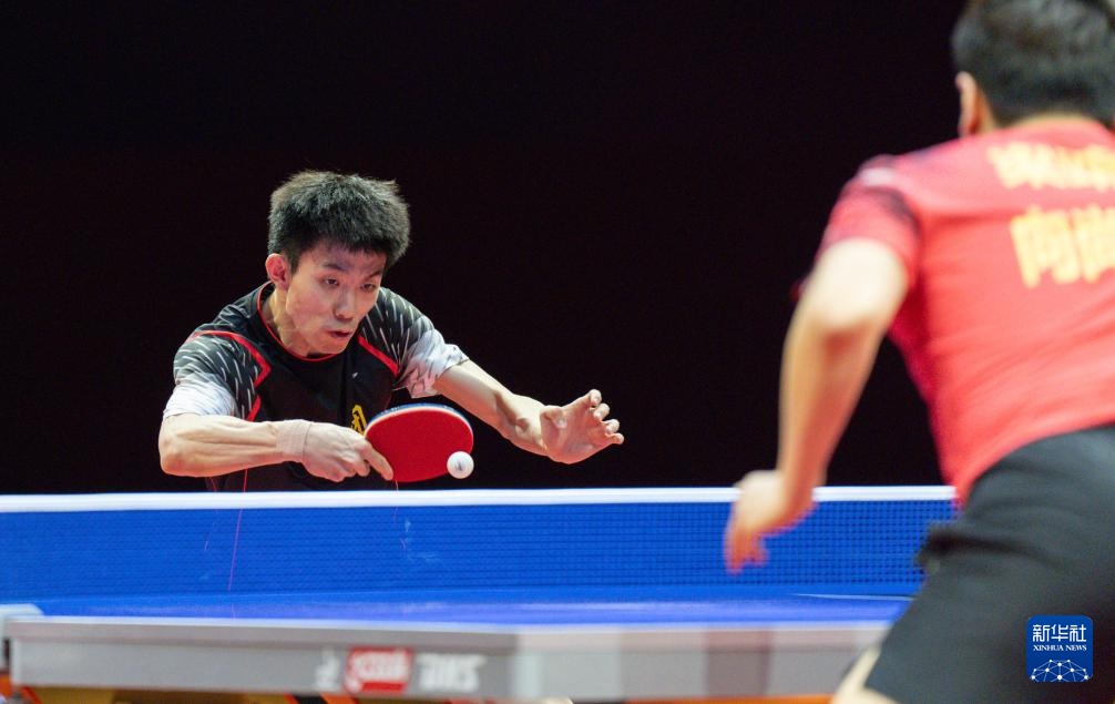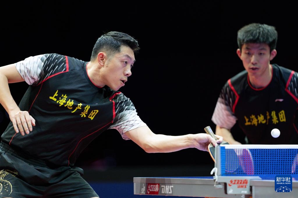 12月31日,山東魏橋·向尚運動隊組合林昀儒(左)/梁靖崑在雙打比賽中。他們3比1戰勝上海地產集團隊組合許昕/周愷。