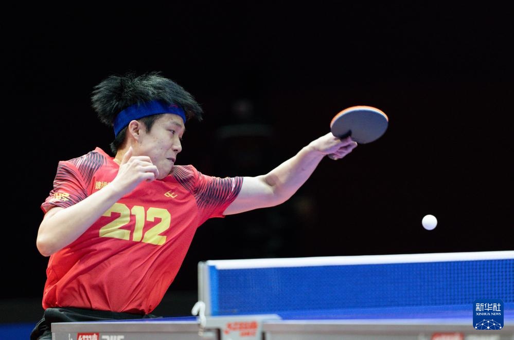 12月31日,山東魏橋·向尚運動隊選手梁靖崑在單打比賽中回球。他3比1戰勝上海地產集團隊選手周愷。