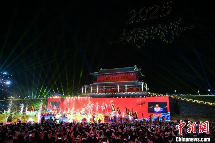 2024年12月31日晚,京津冀三地首次聯(lián)動舉辦跨年倒計時活動。圖為河北石家莊正定古城會場。中新社記者 翟羽佳 攝