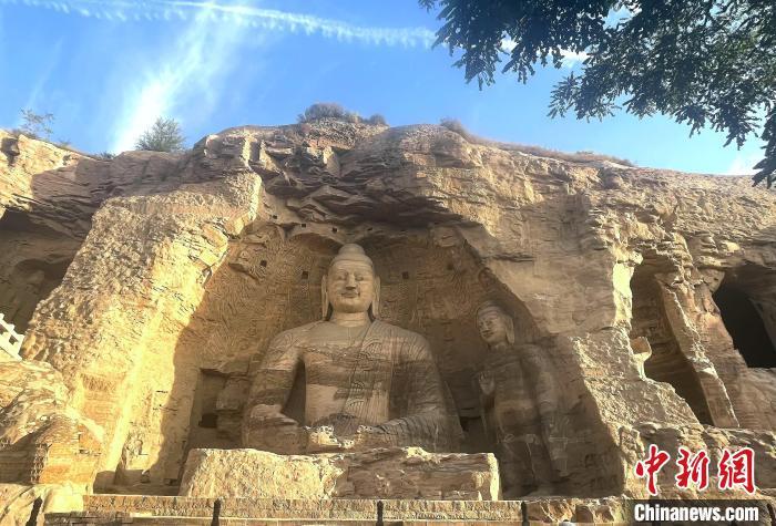 云岡石窟標(biāo)志性洞窟第20窟。(資料圖)中新社記者 胡健 攝