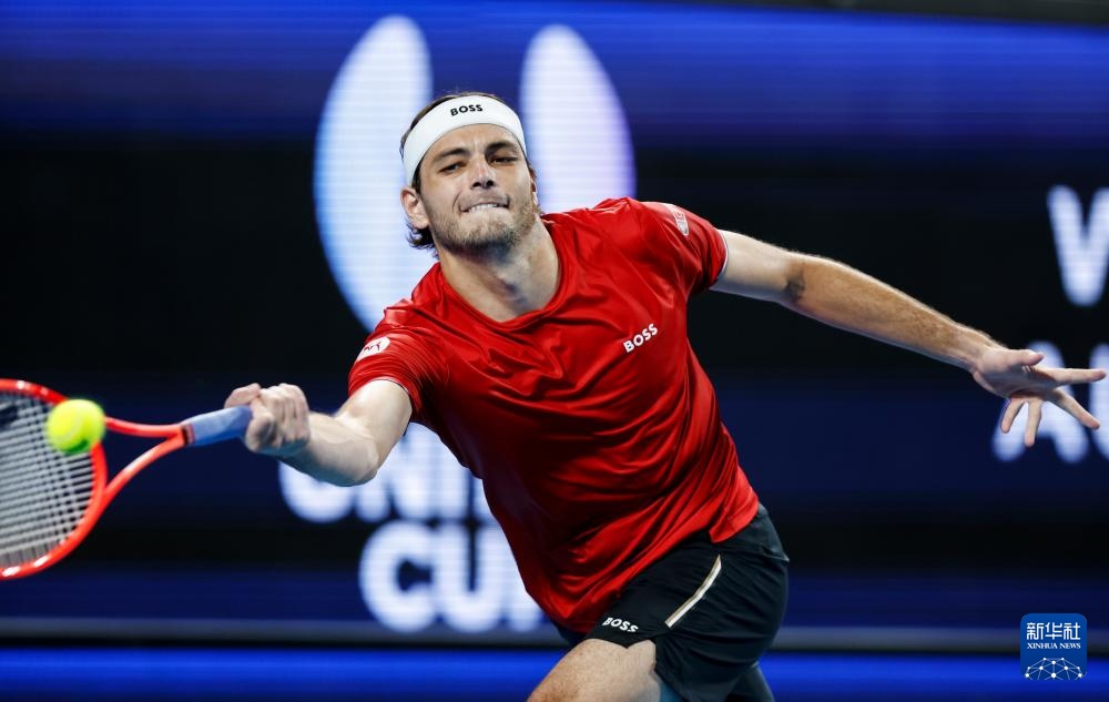 1月1日,美國隊選手弗里茨在男單比賽中回球。最終,他2比0戰勝中國隊選手張之臻。