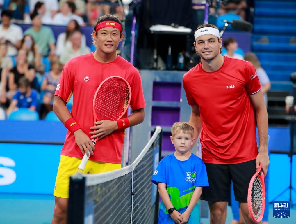 1月1日,中國隊選手張之臻(左)與美國隊選手弗里茨在比賽前合影。