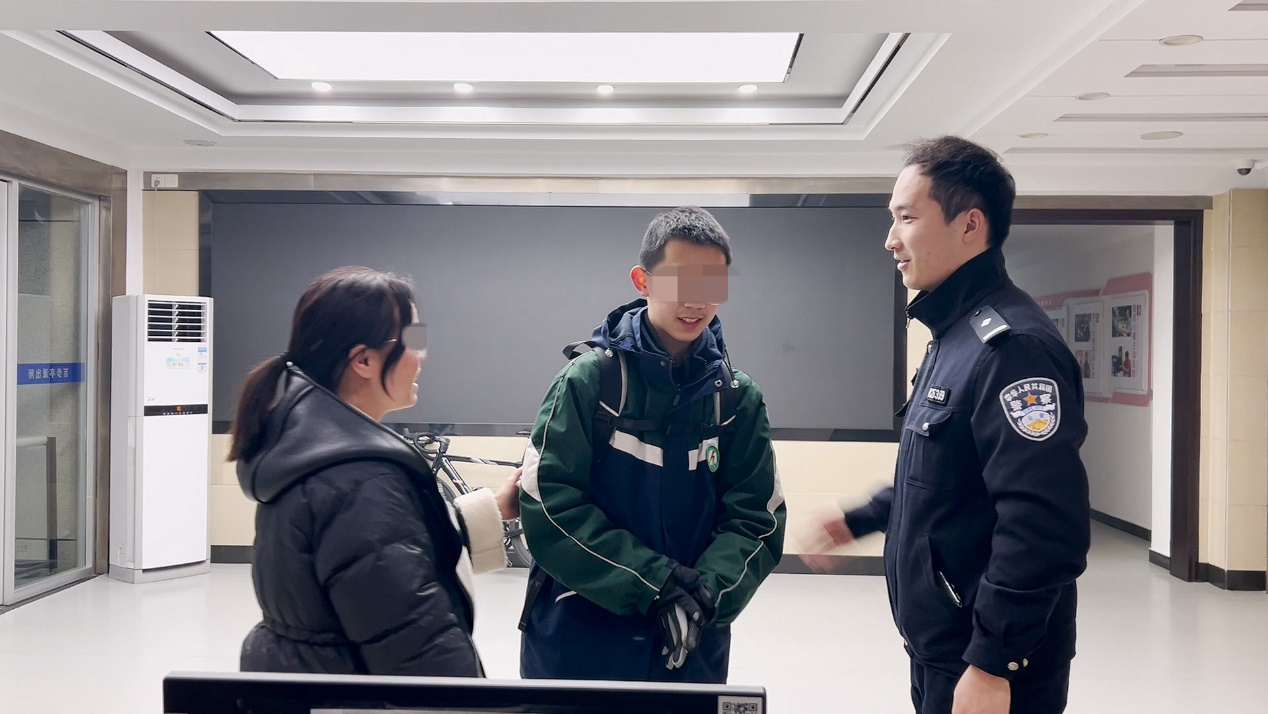 2024年12月31日,張同學(xué)一放學(xué)便趕到派出所,迫不及待騎上自己的自行車,按捺不住喜悅。“沒想到這么快,接到電話,我們還不敢相信,本來打算放棄了。”方女士不住感謝民警的高效工作。民警鼓勵張同學(xué)好好學(xué)習(xí),并叮囑他要記得鎖車。