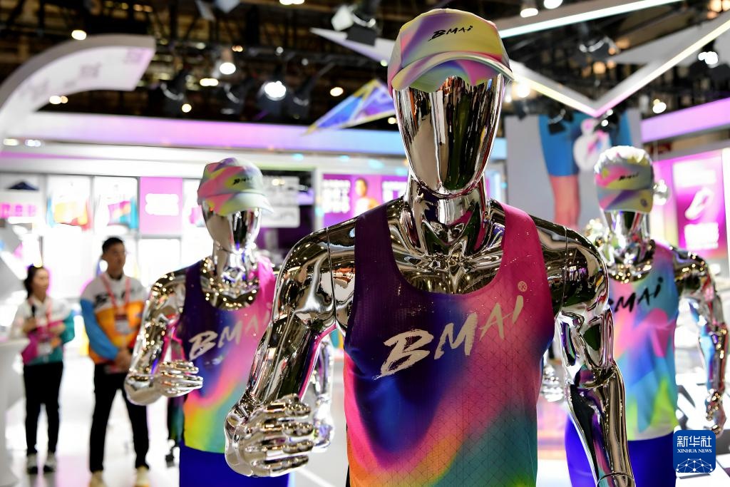這是1月2日在第六屆中國馬拉松博覽會運動裝備展區拍攝的體育運動服裝。