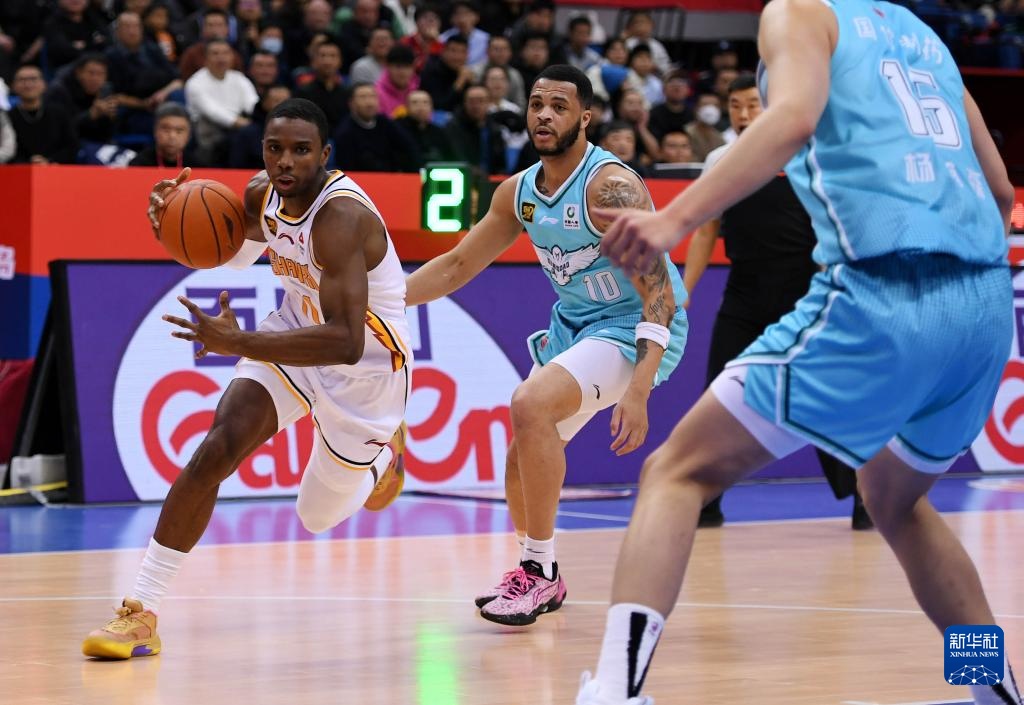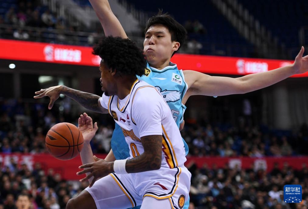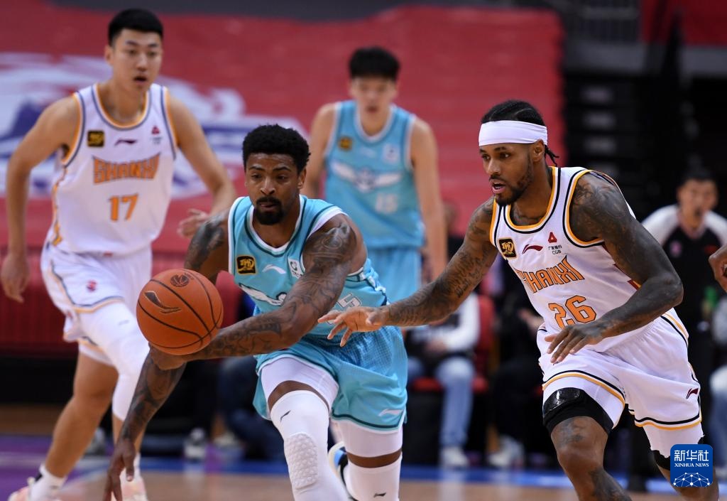 1月3日,山西汾酒隊球員迪亞洛(左)在比賽中進攻。