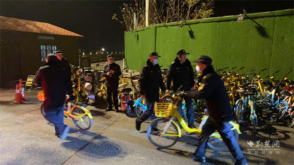 執法中心工作人員清理觀景點出入口單車。 通訊員供圖