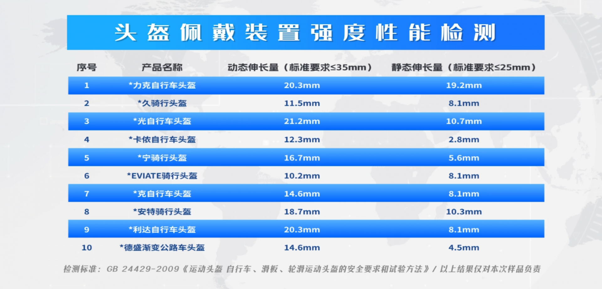 通過(guò)檢測(cè)結(jié)果,我們發(fā)現(xiàn)這10款運(yùn)動(dòng)頭盔的佩戴裝置強(qiáng)度性能和吸收碰撞能量性能均符合標(biāo)準(zhǔn)要求。