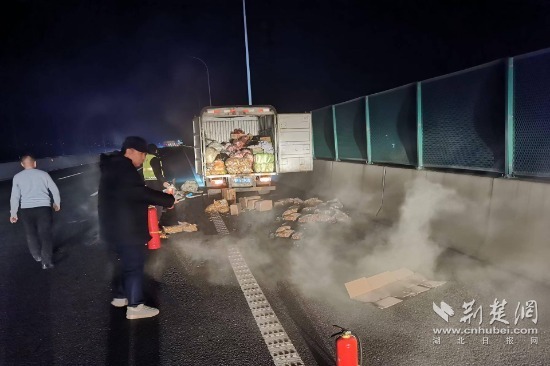 貨車司機苗師緊緊握住工作人員的手,連聲道謝:“當時真的把我嚇壞了,要不是你們及時發現并幫助我滅火,我的車和貨可能都燒沒了,太感謝你們了!”