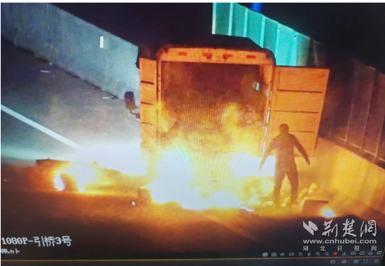 時間回溯至半個月前,12月23日5點13分左右,司機苗師傅正駕駛著集裝箱貨車行駛在河谷大橋上。因車廂內遺留未熄滅的煙頭,貨物突然起火,火勢迅速蔓延至整個車廂。