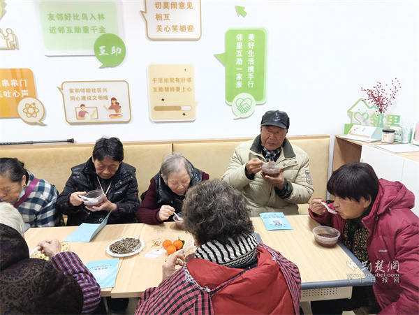 會議結束后,自治小組成員和志愿者們分工合作,開始熬煮臘八粥。小區(qū)居民和新就業(yè)群體職工受邀來到現場,一邊品嘗著寓意生活美滿、幸福安康的營養(yǎng)粥品,一邊閑話家常,感受著來自社區(qū)大家庭的關懷和溫暖。