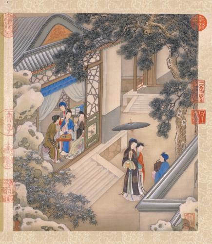 清 陳枚《月曼清游圖冊》之十二月“踏雪尋詩”