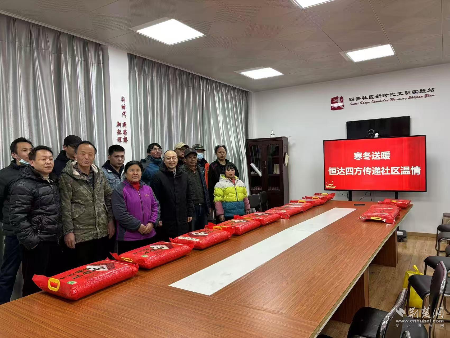 活動現場,武漢恒達四方工程有限公司公司趙書記為環(huán)衛(wèi)工人、安保人員等一線工作者發(fā)放物資。社區(qū)工作人員還與他們進行交流,詢問其工作和生活情況,叮囑他們要注意個人安全和防護,做好冬季保暖措施,并對他們不論在酷夏還是寒冬,風雨無阻地堅守在一線工作表示感謝。