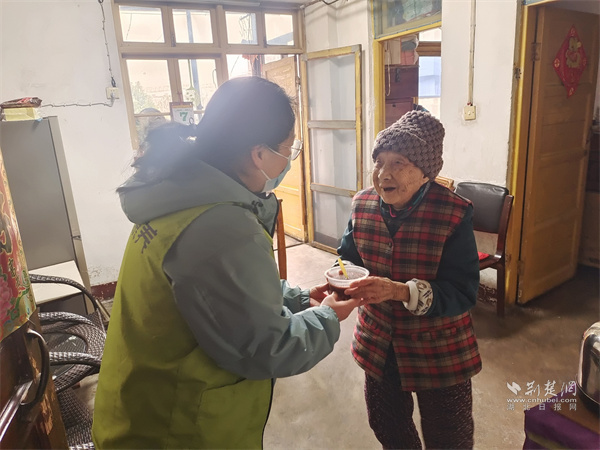 志愿者將祝福和愛心粥送給轄區(qū)高齡老人。 通訊員供圖