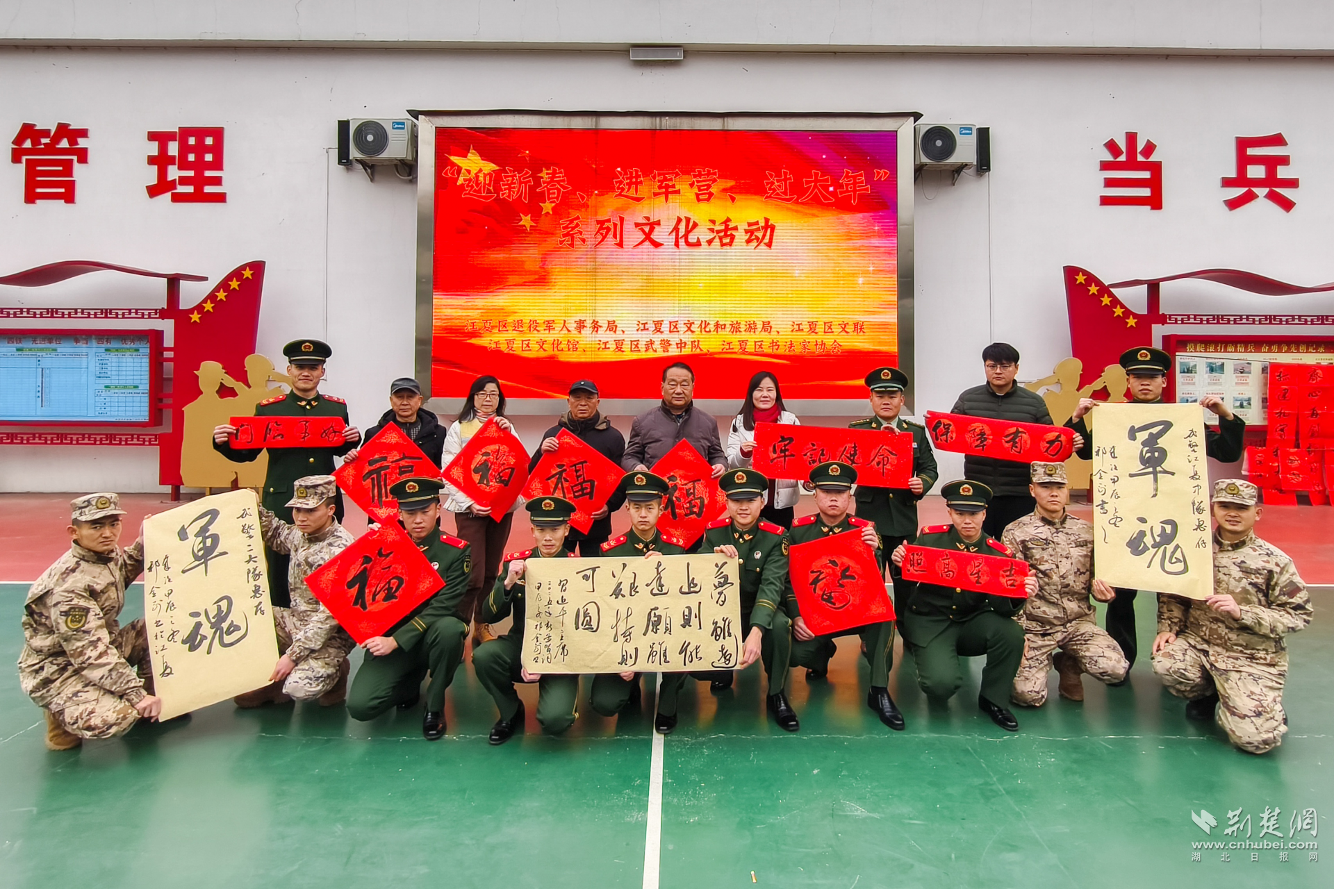 荊楚網(湖北日報網)訊(通訊員舒威、舒南麗)在新春佳節即將到來之際,1月7日上午,武漢市江夏區退役軍人事務局聯合區文化和旅游局、區文聯、區文化館、區圖書館、區新華書店、區書法家協會啟動2025年“迎新春 進軍營 過大年”系列文化活動。活動第一站走進區武警中隊,與部隊官兵們歡聚一堂,一幅幅春聯、一張張“福”字,傳遞著新春的祝福和濃濃的軍地魚水之情。