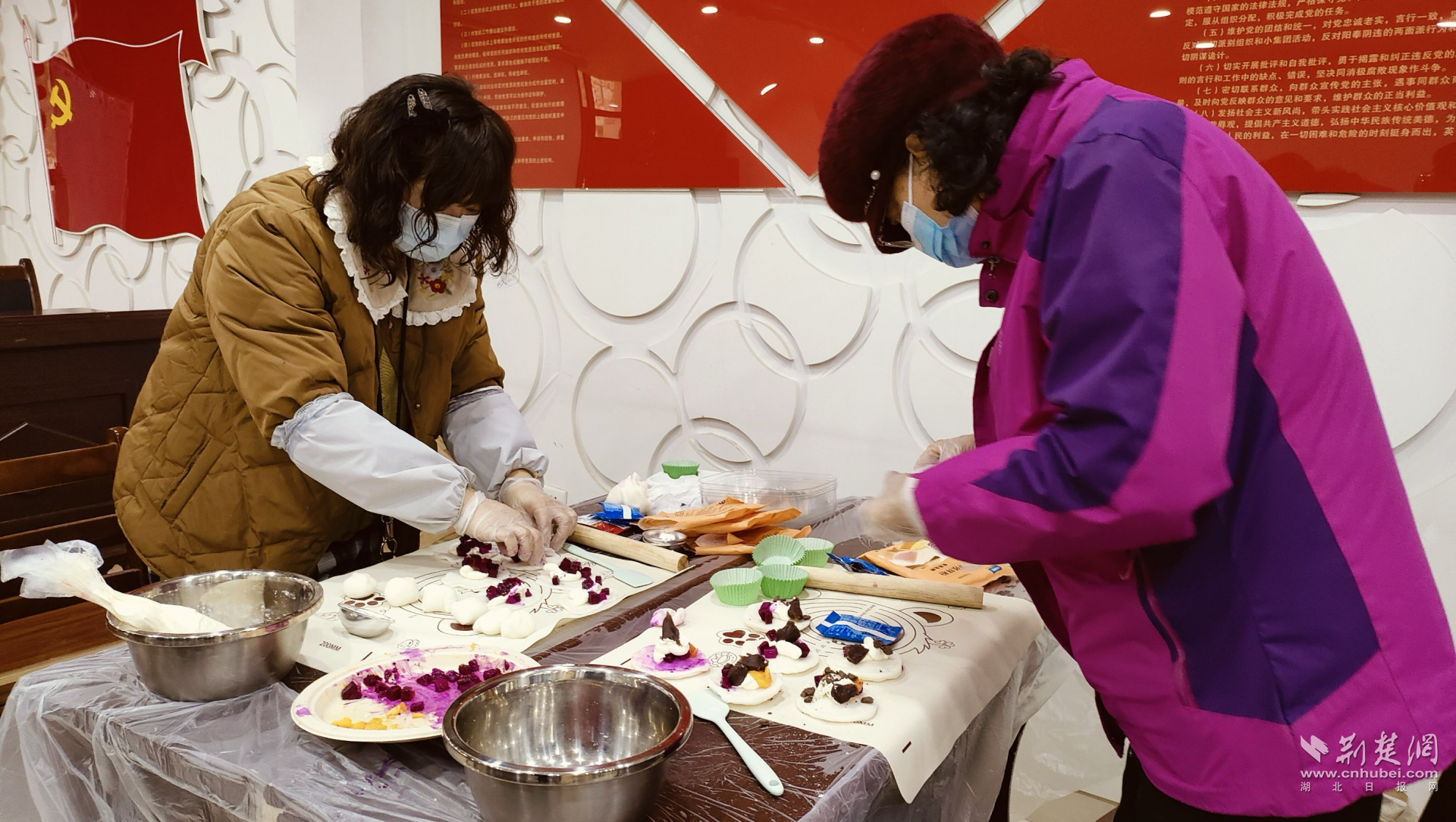 在大家的努力下,一個個圓潤可愛、白白胖胖的雪媚娘逐漸成型。居民李阿姨開心地說道:“原以為做糕點(diǎn)是件特別復(fù)雜的事,沒想到還比較容易上手。看到自己親手做出來的甜點(diǎn),感覺格外有成就感。”