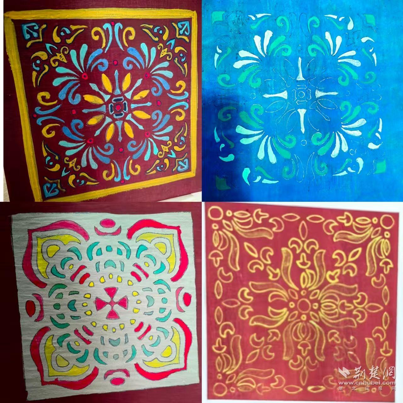 課程從壁畫粉本概念剖析到泥板底色刷染現場演示,全方位引導學員領略泥板刷染法魅力,以及古代工匠即興創作的繪畫精神。學員們在完成基礎線稿后,于無標準顏色參考下自由創作,繪制出飽含新年美好期許的新春吉祥紋飾圖,成為了獨一無二的新年禮物。