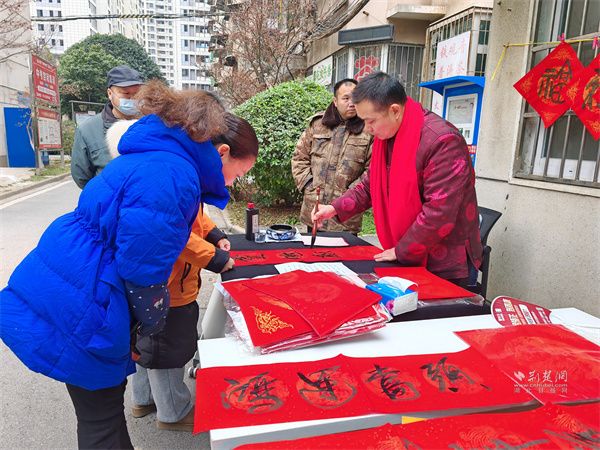 在國棉社區江南公寓北區,湖北省書畫家協會的呂紅亮老師和江南公寓北區“逸景江南”組織的楊老師揮毫潑墨,書寫了一幅幅寓意吉祥的春聯與福字。現場還設置了傳統文化展示區,展示了剪紙、中國結等傳統手工藝作品,讓居民們在欣賞和體驗中感受到傳統文化的魅力。墨香四溢中,“年味”在家門口悄然彌漫開來。