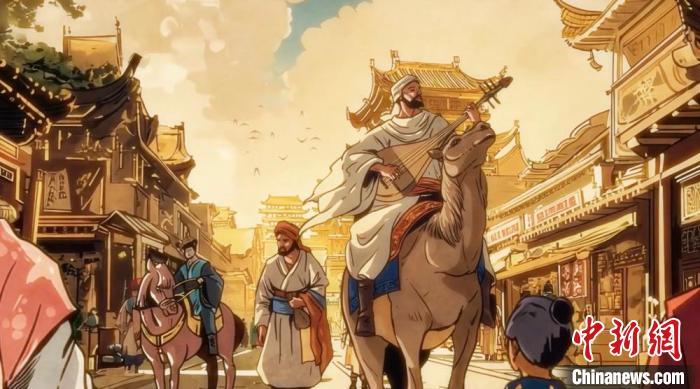 “漫畫中國(guó)”系列作品之一的《唐三彩駱駝?shì)d樂俑上的粟特人》片段畫面。(中國(guó)傳媒大學(xué)區(qū)域國(guó)別傳播研究院供圖)