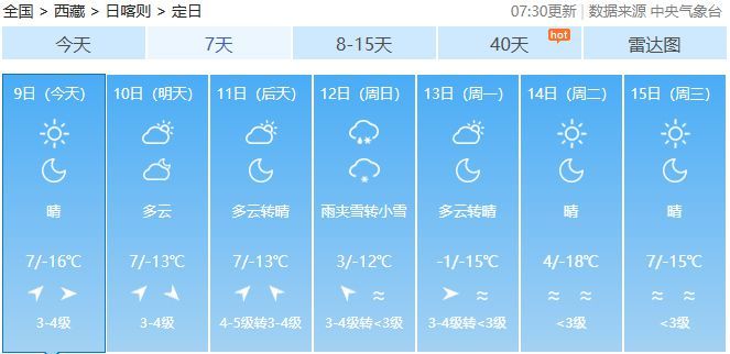 其中,未來三天震區(qū)及周邊地區(qū)以晴天為主,午后有7至8級大風(fēng);定日縣最高氣溫7℃,最低氣溫-13℃至-16℃。