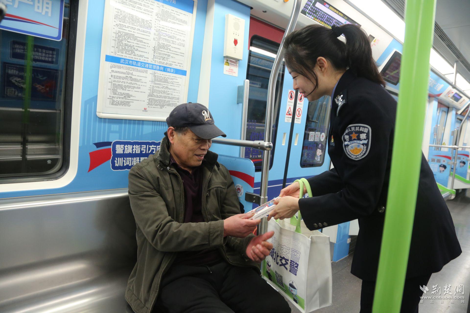 1月8日,登上武漢軌道交通4號線“平安湖北”專列,車廂內生動有趣的反詐視力表、道路安全科普漫畫、政務服務圖解,瞬間吸引了不少乘客的目光。