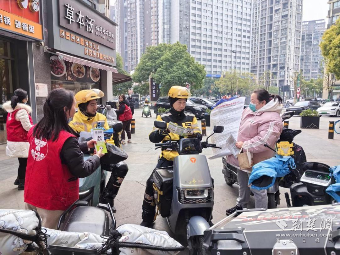 荊楚網(湖北日報網)訊(通訊員 王銀鐵)為進一步拓寬禁毒宣傳受眾群體,充分利用外賣騎手“走千條路、進萬家門的職業優勢,讓禁毒宣傳工作深入進入千家萬戶,營造平安無毒的轄區環境,1月8日,在武昌區禁毒辦指導下,積玉橋街道走進萬達美食金街開展禁毒宣傳活動,進一步拓寬禁毒宣傳覆蓋面。