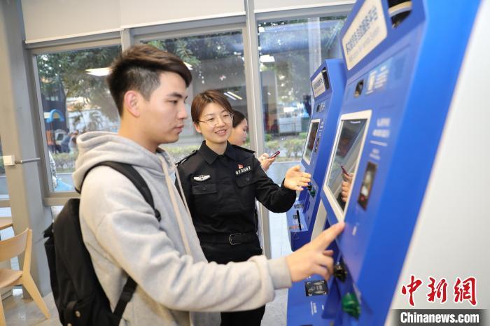 深圳市八卦嶺派出所民警指引群眾使用自助辦證機(jī)快速辦理業(yè)務(wù)。廣東省公安廳 供圖