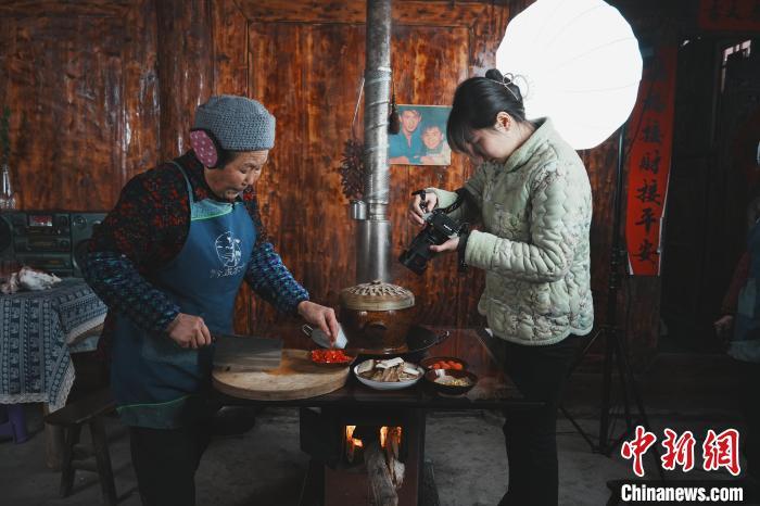 2025年第一場雪后,位于貴州省銅仁市德江縣的煥河村炊煙裊裊,幾名身穿棉衣的年輕人在古井邊直播洗菜浣衣,古井旁一棟百年木屋里,77歲的張金秀忙著生火做飯,隨著爐子里柴火發出噼里啪啦聲,飯甑里騰騰的熱氣蔓延開來。