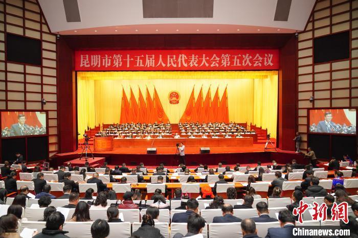 1月12日,昆明市第十五屆人民代表大會第五次會議開幕。中新社記者 劉冉陽 攝