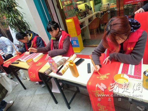 轄區青少年為居民寫春聯送祝福。 通訊員供圖