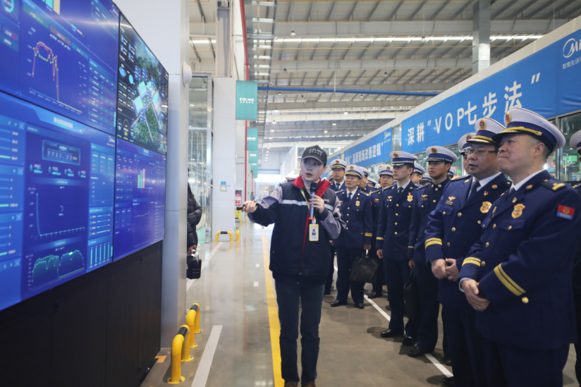 上午9時許,全體人員在講解員的指引下,走進美的集團“燈塔工廠”,首先觀看了《美的生活,智造之城》企業宣傳片。隨后,全體人員走進美的冰箱智能生產車間,巨型屏幕上實時“跳躍”每一臺冰箱的生產數據,80%的工作由機器自動完成,一臺臺自動化鈑金加工設備實現高效作業,眾多AGV搬運機器人實現“端到端”的自動物流……指戰員沉浸式感受到新質生產力帶來的巨大震撼。